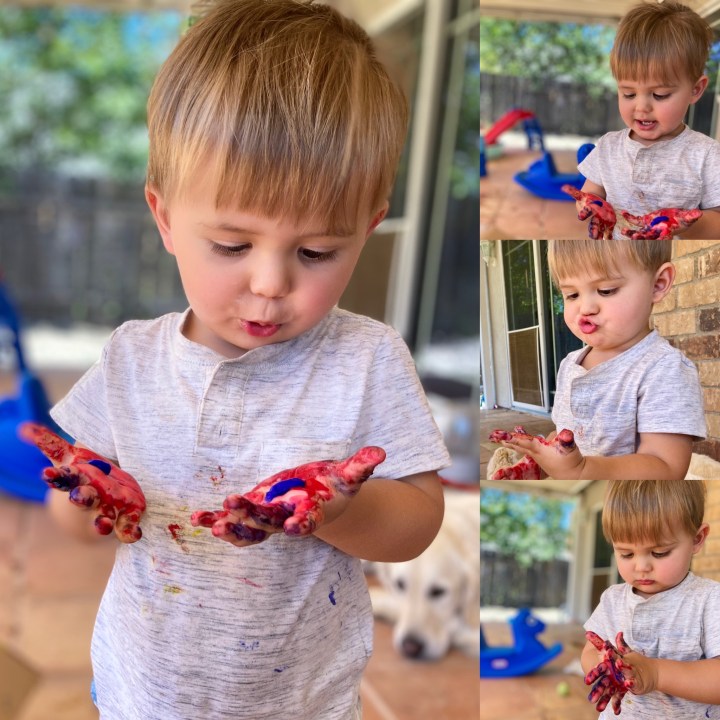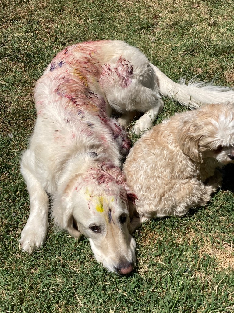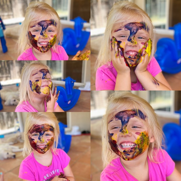 Oh or the time Rylee took paint and went Leonardo Da Vinci on our dogs backside! No animals were harmed as it was safe paint and non toxic, even so, Luna did not approve.